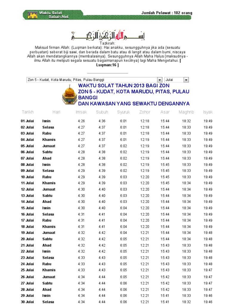 Waktu Solat Kota Marudu Julai 2013 Pdf